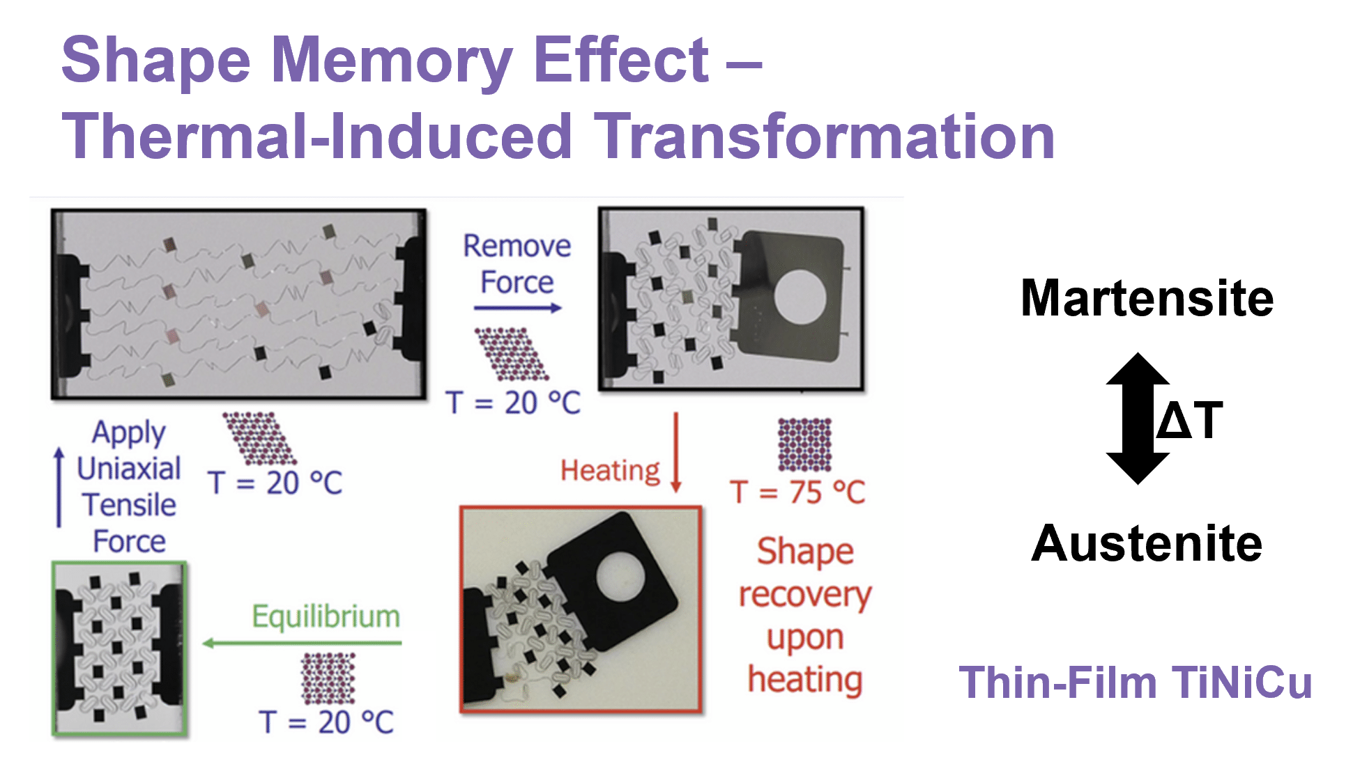 - Tunable martensite ↔ austenite phase transformation